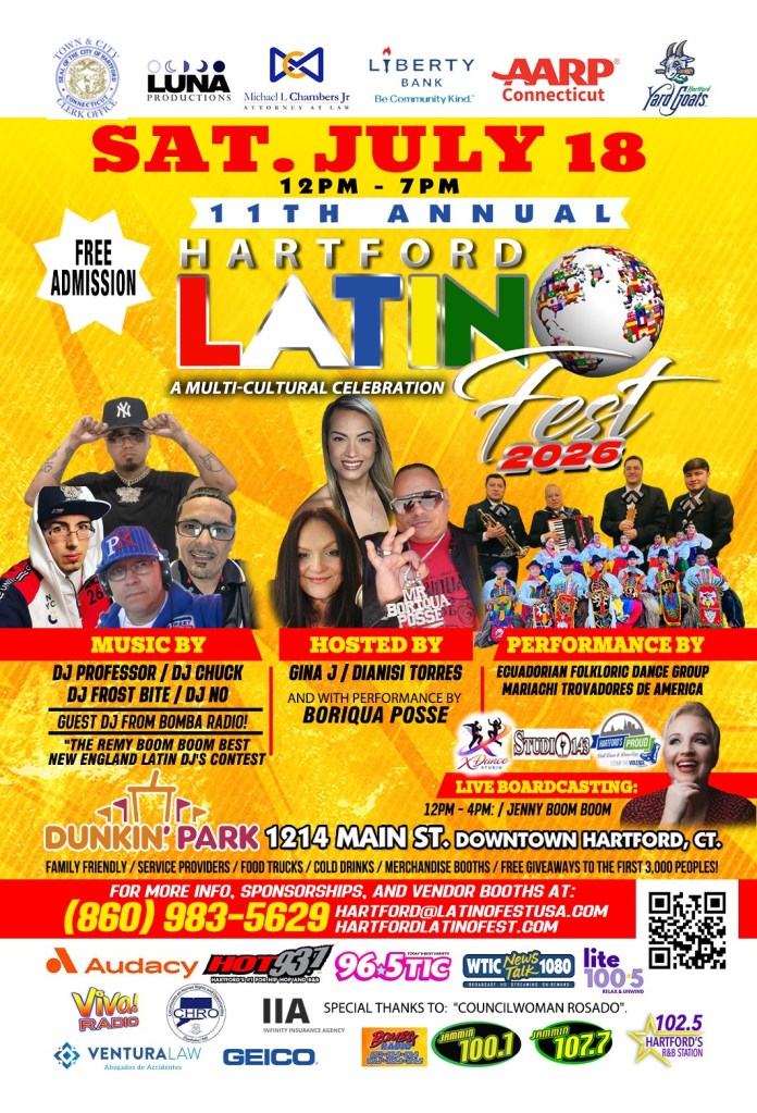 Save the date – July 18, 2026 – and make your way to Dunkin Park for a day of cultural exploration and community spirit. Let’s come together to honor the past, celebrate the present, and embrace the future. We look forward to seeing you at the heart of the 11th Annual Hartford Latino Fest!